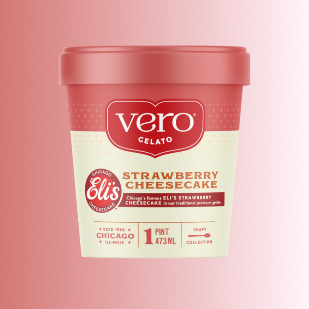 Simple and sweet gelato base with Eli’s Strawberry cheesecake bits swirled in