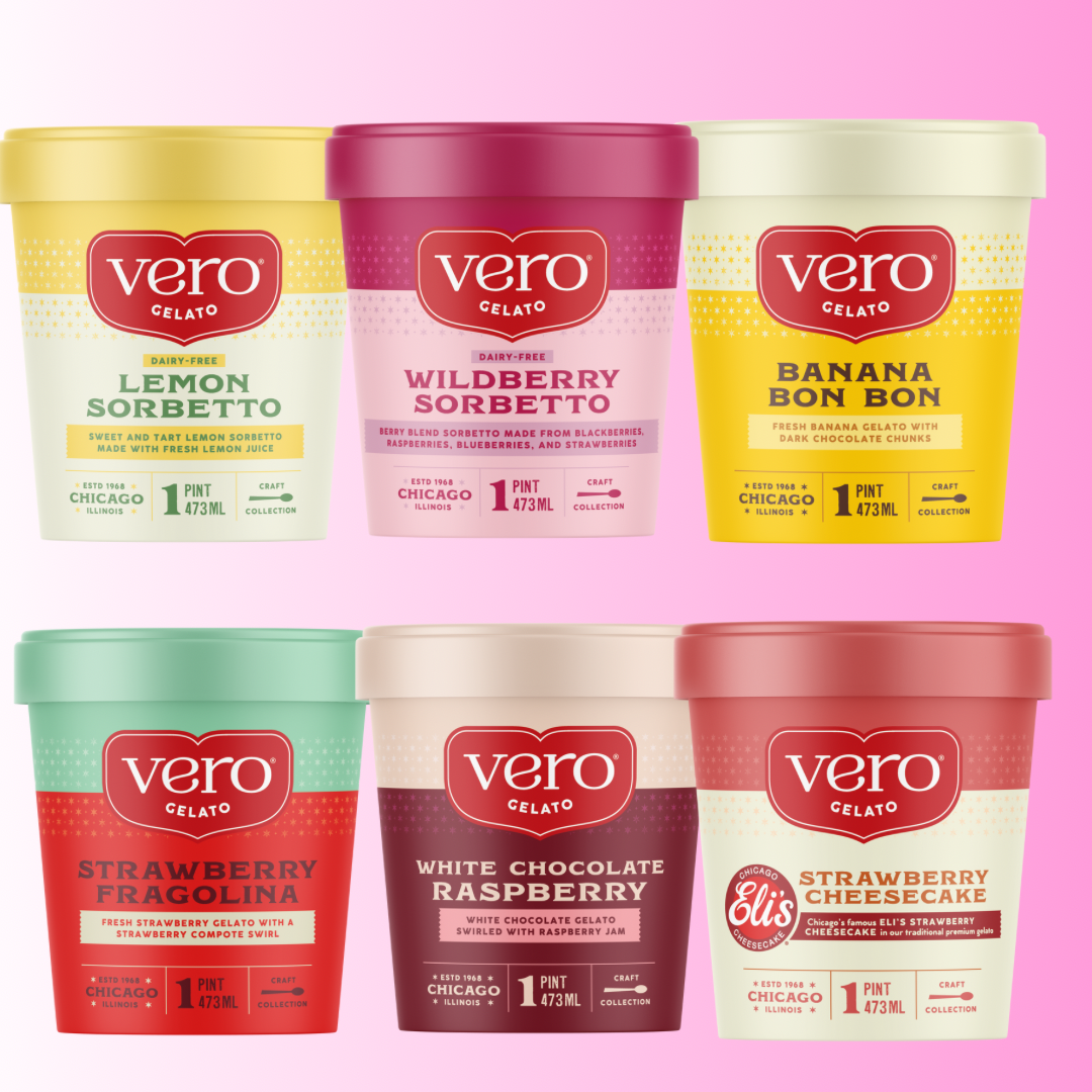 Lemon Sorbetto, Wildberry Sorbetto, Banana Bon Bon, Strawberry Fragolina, White Chocolate Raspberry, and Eli’s Strawberry Cheesecake.