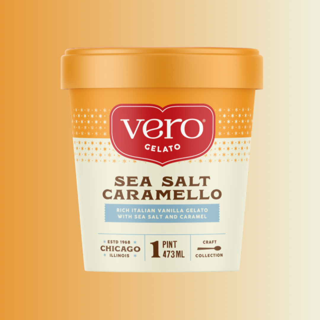 Rich Italian Vanilla Gelato with delicious sea salt and caramel swirls